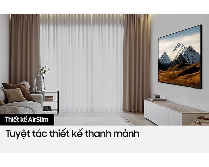 DU8000 nổi bật với thiết kế AirSlim siêu mỏng, tạo nên vẻ ngoài thanh lịch và hiện đại. Viền màn hình siêu mỏng giúp mở rộng không gian hiển thị, mang đến trải nghiệm xem tràn viền đầy ấn tượng. Màu sắc Titan Gray sang trọng cùng chân đế Flat Lift vững chắc, dễ dàng hòa hợp với mọi không gian nội thất.