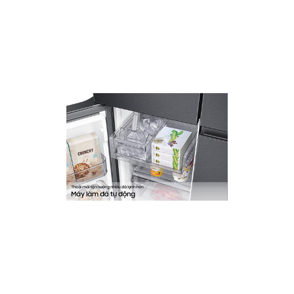 Tủ lạnh được trang bị máy làm đá tự động, giúp bạn có ngay những viên đá mát lạnh giải khát trong những ngày oi bức mà không cần phải làm thủ công. Hệ thống làm đá nhỏ gọn, không chiếm nhiều diện tích, đảm bảo đủ lượng đá dùng hằng ngày.