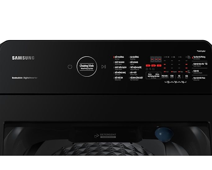 Máy giặt 9,5 kg Ecobubble™ Máy tinh Cửa Trên - Động Cơ Digital Biến tần sở hữu thiết kế cửa trên tiện ích, phù hợp với nhiều không gian nội thất khác nhau, từ hộ gia đình nhỏ đến những nền nhà hiện đại. Với tông màu đen xám lịch và mặt kính cường lực bóng bẫy, sản phẩm mang lại cảm giác sang trọng và bền bỉ theo thời gian.